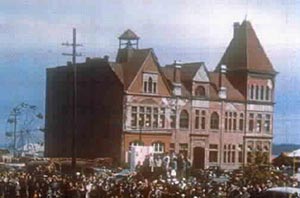 With a mix of zeal and desperation individuals from diverse backgrounds somehow worked together to build a city on a sand spit. The City Hall building sat like a crown at the top of a wharf-studded street of impressive and imposing brick, stone and wood frame buildings along the shore of Port Townsend Bay. The citizens of Port Townsend continued to build large buildings, elaborate homes, wharves, streetcars, and a never-to-be railroad right up until the nationwide economic depression of 1893.